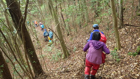 縦穴の場所から更に上って行く 9時44分 皆さんこの急坂では寡黙になってしまった