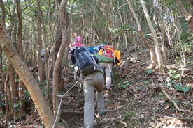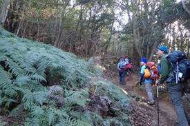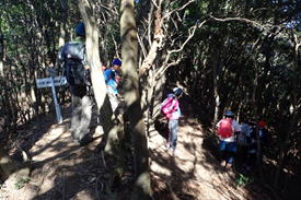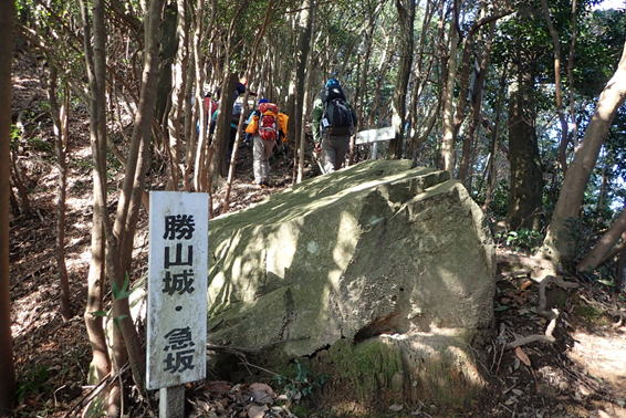 | 緩やかなアップダウンを繰り返し歩いていると「勝山城・急坂」の表示が目に入った 10時58分 |