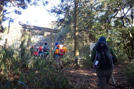 三角点のあった鳥居から少し歩くと神社が現れた。 |
