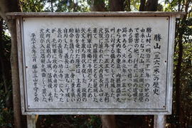 山頂には勝山の歴史を紹介する説明看板がある。ちょっと読んでみよう! |