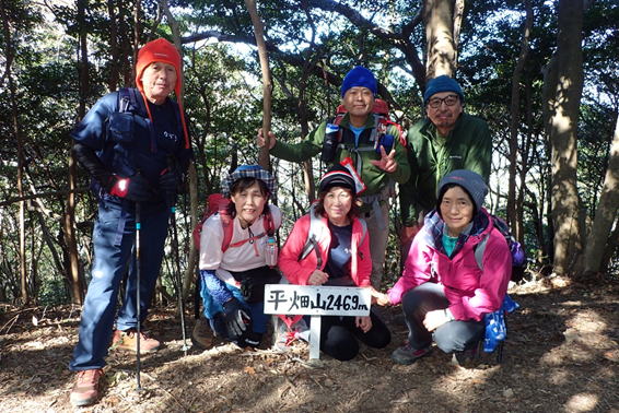| 平畑山山頂でも記念撮影 12時43分 皆さん余裕の笑顔 |
