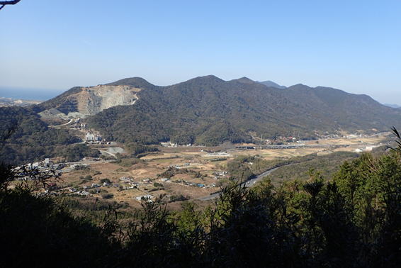 | 車道を歩きながら右手の景色を見ると、採石場が目に入った。 |