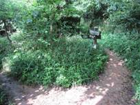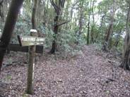 高蔵山森林公園への分岐 14時09分 実はこの草に覆われた標識を見落としてしまい、その先の分かれ道をどちらでもいいのだろうと勝手に判断して、左に行ってしまった。 |