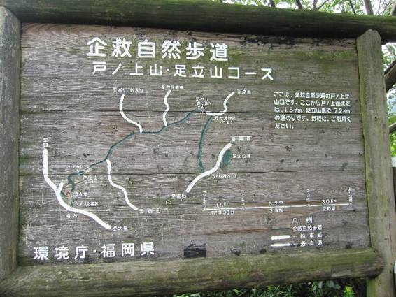 戸の上山〜足立山まで 5.7キロ(3時間) と表示してある。