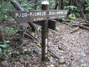 この標識には、登山口〜戸の上山まで1.5キロ(1時間30分)