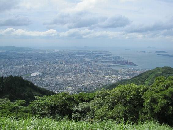 小文字山山頂から小倉市街を望む。(左手に皿倉山・権現山が見える)