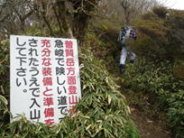 5、国見別れ 12時31分 山頂から12分で国見別れまで下って来た。 注意看板 |
