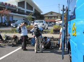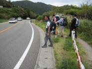12、大曲り 11時26分 道路を渡るとバスがお出迎え。 全員無事に下山完了。山の神様に感謝。