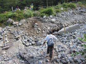 土石流の爪あとを横切る。 10時37分 自然の力はすごい。想像するとゾッとする。