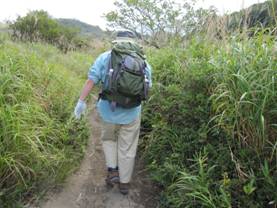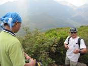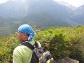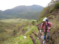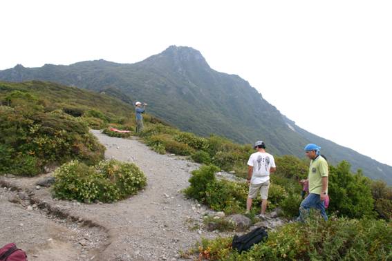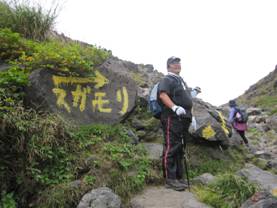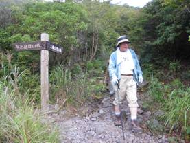 三俣山を下山 10時00分 また来た道を戻ります。N村君「ハイ ポーズ」 |