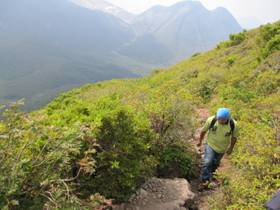 段原まであと少し 13時44分 N山君はみんなの写真を撮影してくれている。Gパンで登山とはさすがである。