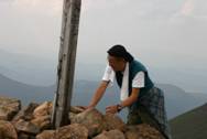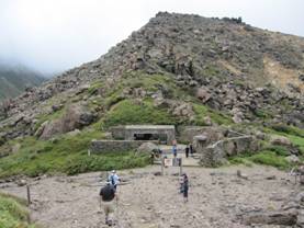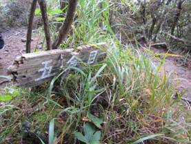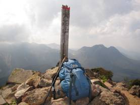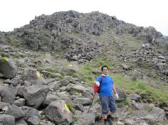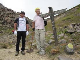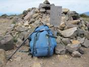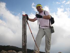 | 汗ビッショリで山頂に到着。山頂に着いたときは暑くてたまらなかったが、少し時間が経つと寒くなって震えるようになった。 急いで下山開始。 |