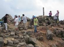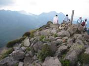 6、大船山山頂 14時19分 1786m N山君、N川、O君、Yさんが最初に登頂。 K君も山頂碑にタッチ。14時38分