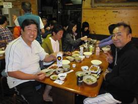 法華院温泉に入り、食事前のビールと焼酎。 今日の登山の話をつまみに・・・・。 |