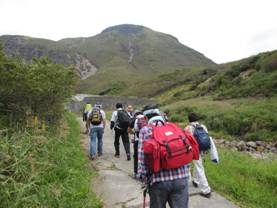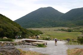 9月22日 二日目 出発 8時05分 法華院温泉山荘裏からの「すがもりコース」を進みます。足取りは軽い(M君を除いて)