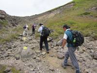 11、ガレ場 10時32分 大小の岩場を慎重に黄色のマーカーに沿って歩きます。走ってはいけませんよ!