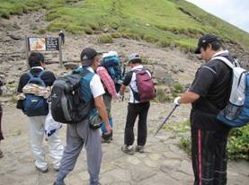 | 今回は二人の初参加もあり、賑やかな山登りとなりました。 皆さん相変わらず元気一杯です。さてさて二日間の結果はいかに・・・。 |