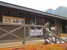 13、星生温泉 山恵の湯 11時36分 駐車場は満車。遠くにさっき登った三俣山。