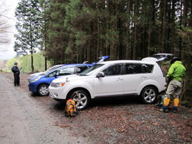 1、吉部登山口駐車場到着 9時10分 約3時間かけて登山口に到着した。 |