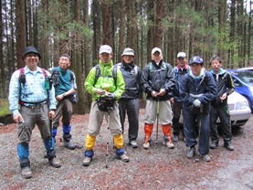 | 半年ぶりの同級生登山である。「年に一度は登ろう」と言いつつ、皆さん登山に目覚めると山行き回数も増えてくる。聞くと、それぞれ個人的にも時々山行きを楽しんでいるようだ。 吉部登山口から大船山を目指して出発。しかし、途中の雨で予定が大幅に変わってしまった。 |