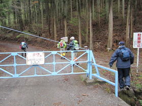 大船林道ゲートを通過 9時27分 ゲートを越えてすぐ右に登山道が伸びている。 |