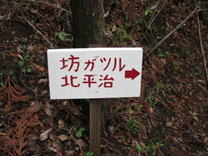 坊ヶツルへの表示 9時38分 すぐに分岐があった。表示通り右に進む。 |