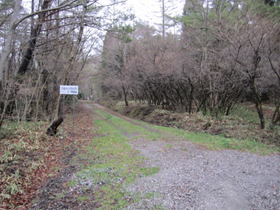4、地図にない林道に出る 9時49分 林道を渡り、そのまま登山道が続いている。 |