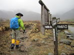 大船登山道への分岐 11時08分 法華院温泉山荘も近くなったこの分岐で、大船山が諦めきれない日帰り組の二人が雨の中を挑戦することにした。ここで一旦別行動。 不安の中進む |