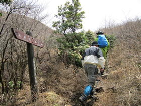 大戸越(うとんごし)への分岐 10時43分 進行方向左手に細い別れ道がある。 |