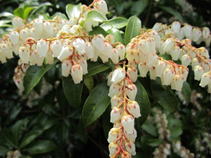 なだらかな登山道 12時45分 白い馬酔木(アセビ)の花が咲いている。 |