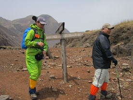 鉾立峠に到着 13時45分 相変わらず風は強い。この石柱は? 九水? |