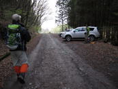 登山口近くで見つけた表示 16時44分 あと少しで登山口。最後まで慎重に。 倒木 |