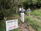 「合野越を経て由布岳へ至る」 10時25分 矢印の通り、左へ向かう。 頂上まで あと1時間35分かかる予定。