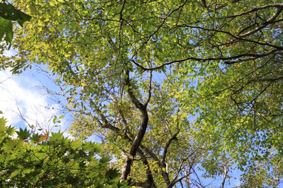 見上げると青空とグリーンがとても綺麗だった。