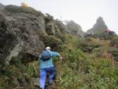 東峰から下界を望む 13時30分 幸いなことに一瞬霧が晴れた。 出発した由布岳の正面登山口がよく見える。 すかさずシャッターを切った。 お腹が減った。 マタエに下りて昼食タイムにすることにした。 |