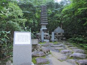 愛知大学生の慰霊碑 5時26分 登山口からすぐのところに愛知大生の遭難を供養する十三重の塔があった。 この塔は、昭和38年1月に愛知大学山岳部の13人が、豪雪のため遭難した慰霊碑です。 慰霊碑に手を合わせ、気を引き締め進む。 |