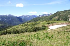 10、薬師平 6時22分 雪渓を抜け少し歩くと展望が開けた。