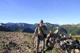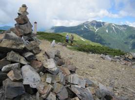 5、北ノ俣岳山頂 12時49分 2661m 薬師岳をバックに記念撮影。太郎平小屋から2時間だった。ここで簡単な昼食をとる。