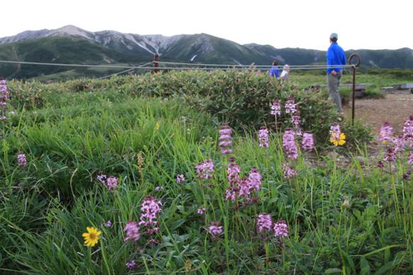 太郎平小屋近く 15時03分 小屋の近くにもいろんな花が咲いている。