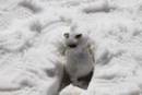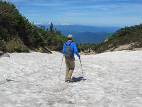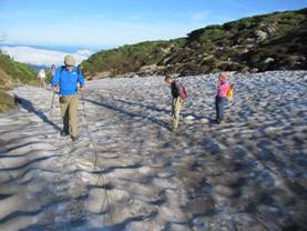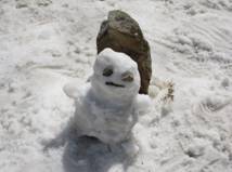 雪渓を注意して下る 9時55分 ここにも雪ダルマが・・・。