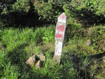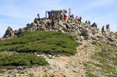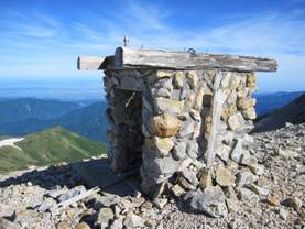 樹林帯を抜け出ると、そこは三角点。日差しが強い。折立登山道から約500mの標高差である。 |