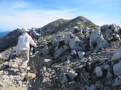 頂上が見えた 7時45分 避難小屋の左を通る本来のコースに戻る。