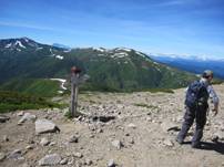 右手を見ると、今日登る予定の北ノ俣岳、手前には池糖があった。