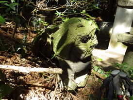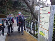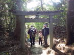 妙見神社上宮鳥居を通過 11時01分 参拝を終え、コンクリートで固められた細い参道を下ると、これまた古そうな鳥居がある。 鳥居付近で数組の家族連れとすれ違った。 元気よく挨拶 |