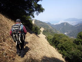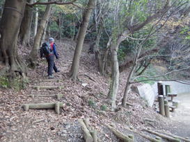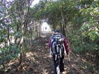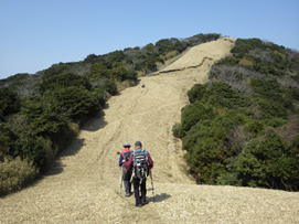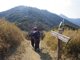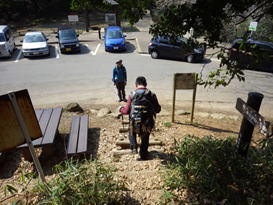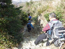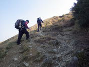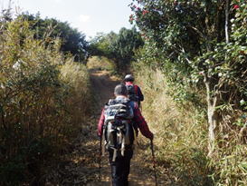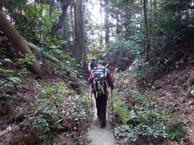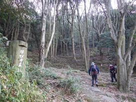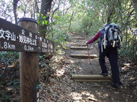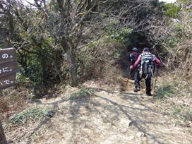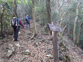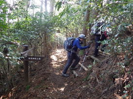 足立山山頂まであと200m 11時15分 先程の企救自然歩道のルート標識から山頂までは、 とにかく上り一辺倒!山頂を目指し、寡黙になって上る。 ガンバ、ガンバ! 山頂はもうすぐ |
