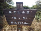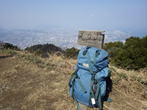 5、足立山山頂 11時19分 598m ここが小倉を代表する山、足立山山頂である。 登山口から2時間35分で山頂に到着!この足立山は別名「霧ヶ岳」とも呼ばれている。 5年前門司港駅から風師山〜矢筈山〜戸の上山〜足立山〜妙見山〜小文字山と9時間かけて縦走したことを思い出した。 山頂碑の後ろには、霞んでいるが貫山が確認できた。 |
