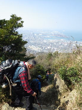 5年ぶりに小文字山と足立山の山頂に立った。稜線を歩いていると、今年初めてウグイスの声に触れることが出来、春の訪れを感じる山行きとなった。足立山山頂で昼食をとっていると団体さんが、3組も代わる代わるやって来て、狭い山頂はごった返して大変な状況だった。 |