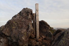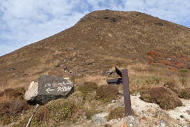 山の名を刻んだ表示板 この表示板、以前は台座に据わっていた。チョコンと出ている久住山の頭を確認! わかりますか? |