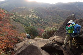 | くじゅう連山の表玄関と言えば、長者原と牧ノ戸登山口である。特に牧ノ戸は久住山に近く、歩きやすい登山道なので人気が高い。シーズンともなれば大勢の登山者が押し寄せて、とても賑やかな登山口となる。今回はその牧ノ戸登山口から久住連山をグルッ〜と一回りしてみた。晩秋の風は冷たかったが、一生懸命歩くにはちょうど良い気候だった。 |