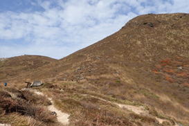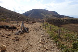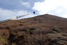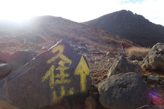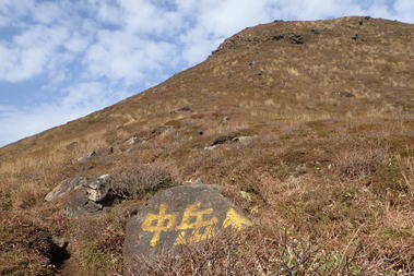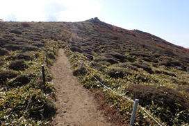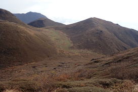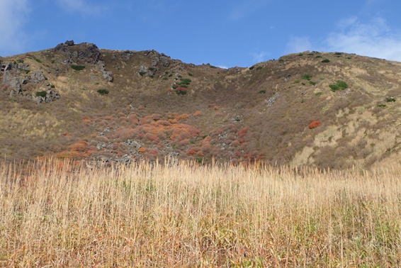 秋を感じる風景 10時03分 白口岳への途中、中岳を眺める。 |